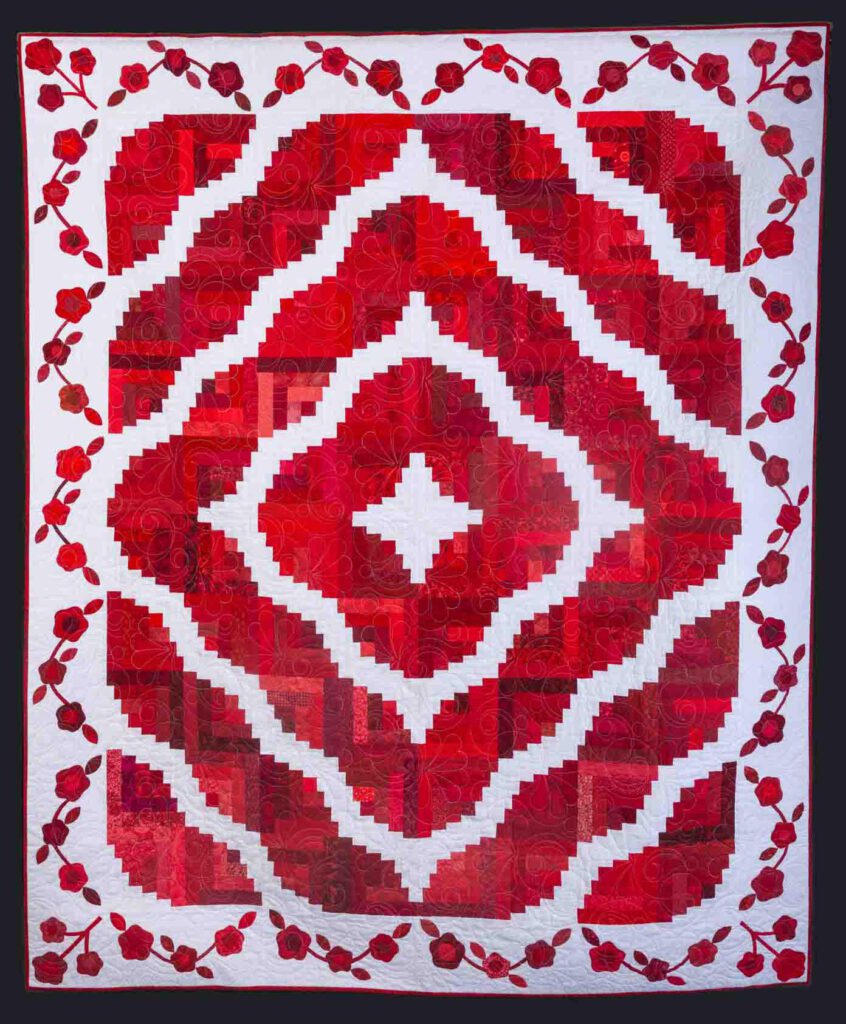 Quilt show Charlottesville Area Quilters GuildQuilt Show XIXSaturday May 16, 2026 9 AM to 4 PMSunday May 17, 2026 9 AM to 3 PMThe Center at Belvedere540 Belvedere BlvdCharlottesville, VARaffle QuiltCabin Among the Ruby BloomsQueen Size 70″ x 85″Raffle tickets $1.00 per ticket or 6 for $5.00Drawing 2:30 PM Sunday, need not be present to winQuilt Show Information More than 180 quilts on display. Attendees can vote for their favorite in each categorySpecial exhibitsMerchants Mall. A variety of vendors offering items such as fabric, notions, yarn, felting supplies, embroidery and more.Shoppe at the Show. Large and small quilted and other hand-made items for sale. Join Contact us to join or come to any chapter meeting to meet our Guild members. Join our guild